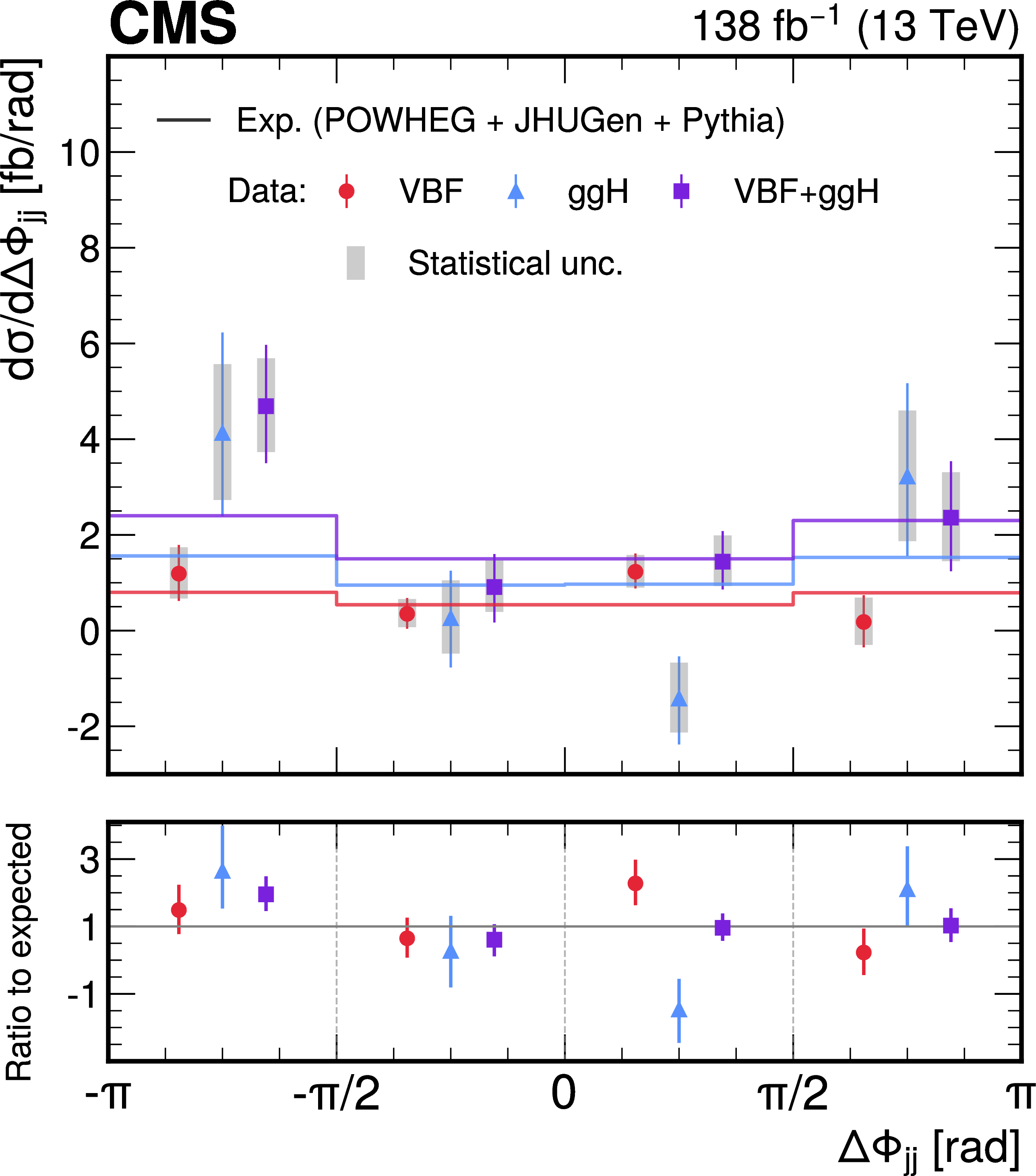 A model-independent measurement of the differential production cross section of the Higgs boson decaying into a pair of W bosons, with a final state including two jets produced in association, is presented. In the analysis, events are selected in which the decay products of the two W bosons consist of an electron, a muon, and missing transverse momentum. The model independence of the measurement is maximized by making use of a discriminating variable that is agnostic to the signal hypothesis developed through machine learning. The analysis is based on proton-proton collision data at √s = 13 TeV collected with the CMS detector from 2012--2018, corresponding to an integrated luminosity of 138 fb-1. The production cross section is measured as a function of the difference in azimuthal angle between the two jets. The differential cross section measurements are used to constrain Higgs boson couplings within the standard model effective field theory framework.