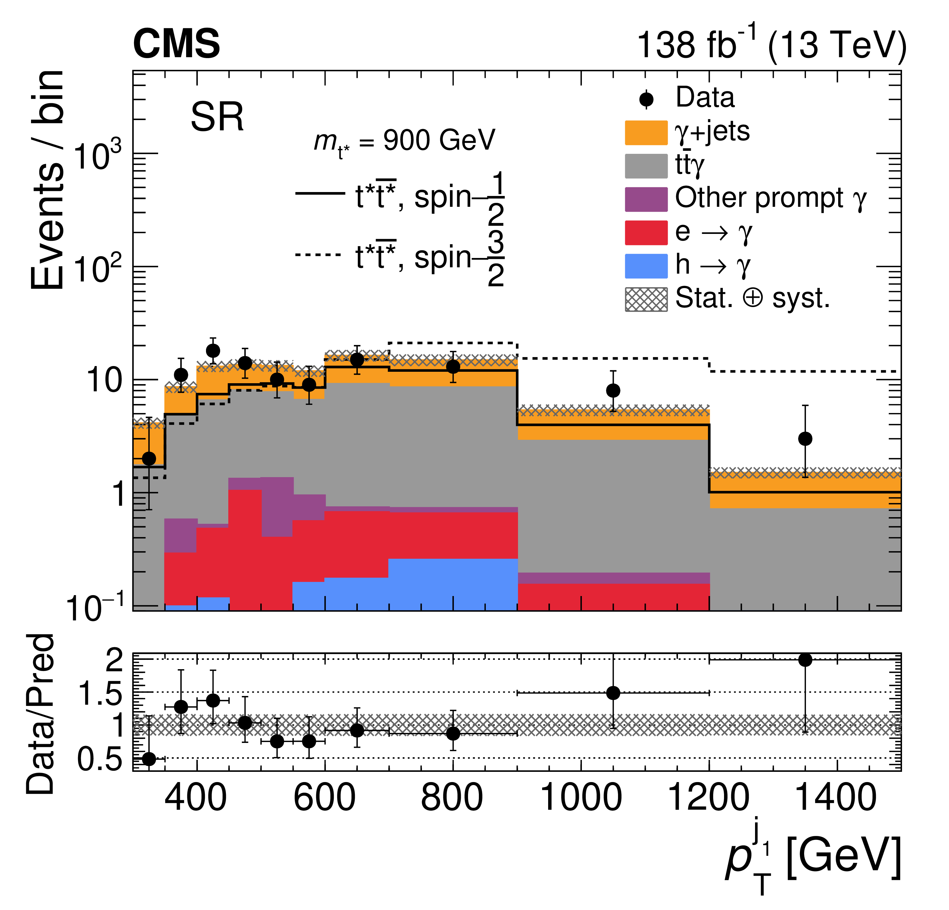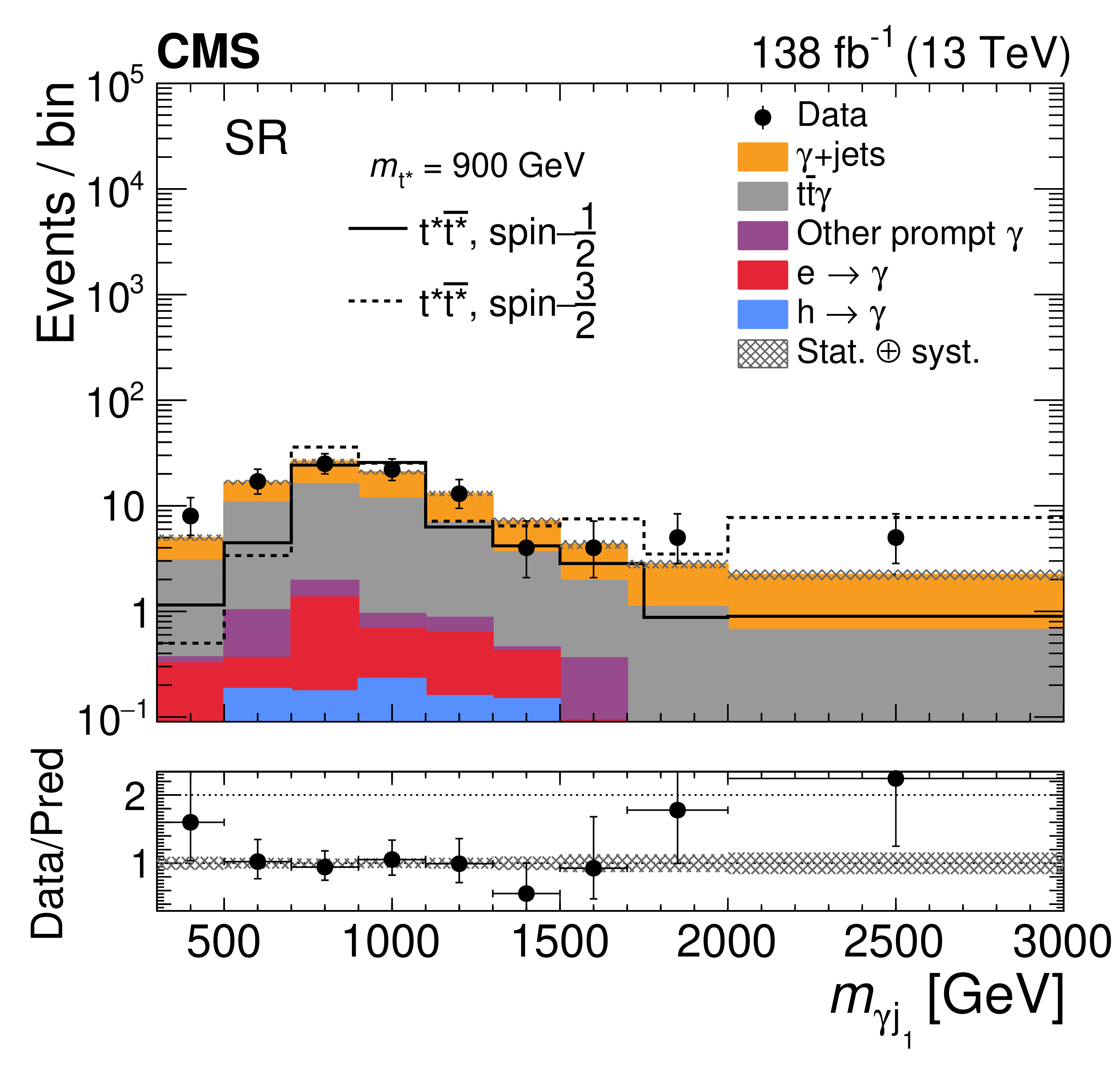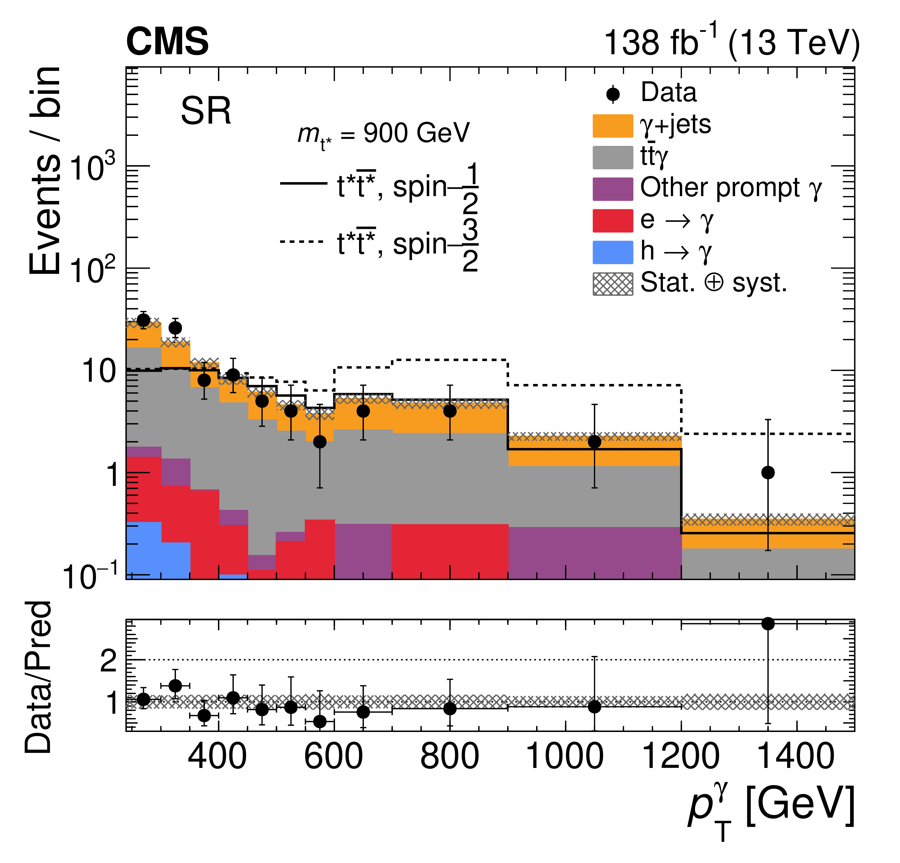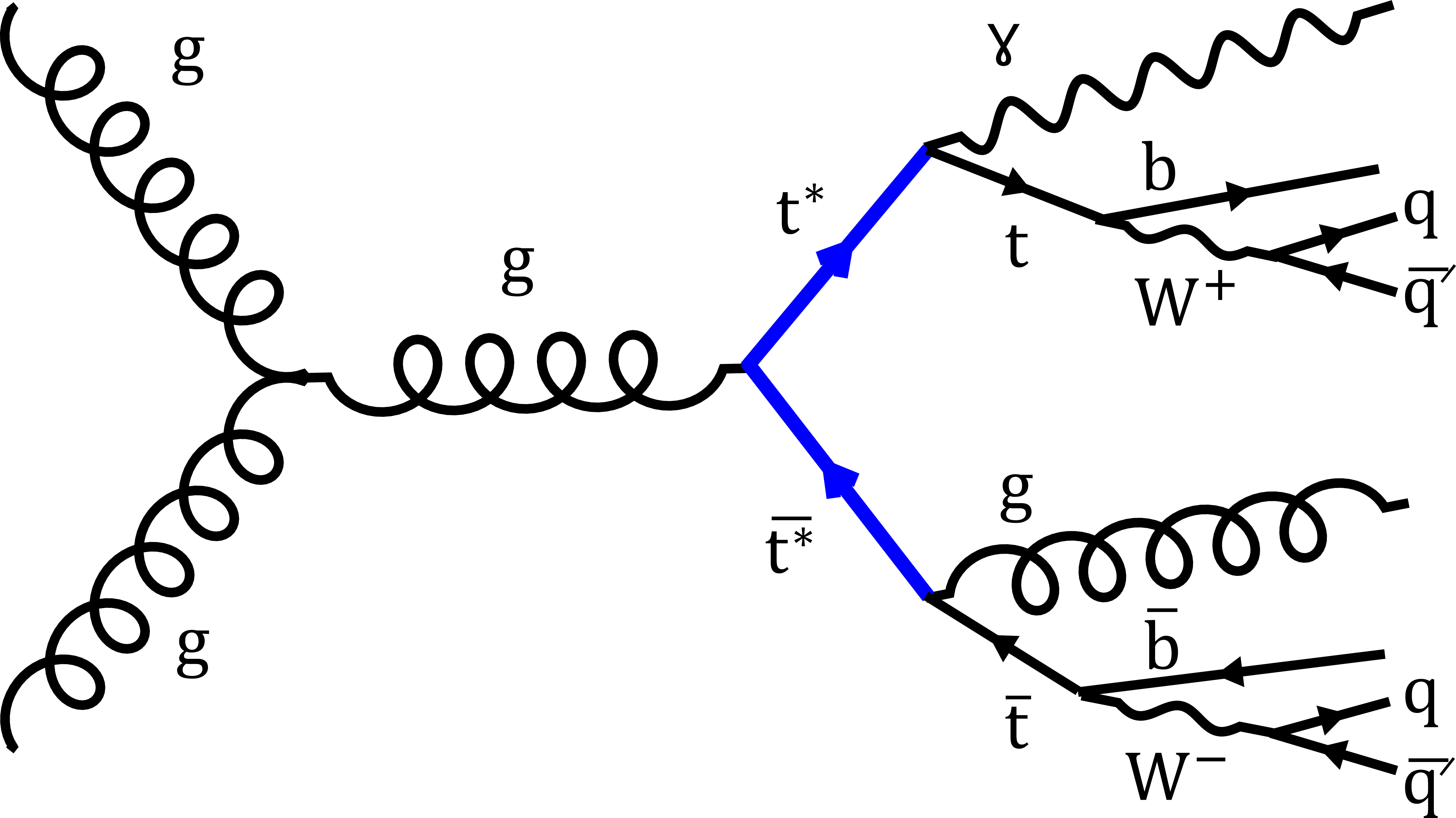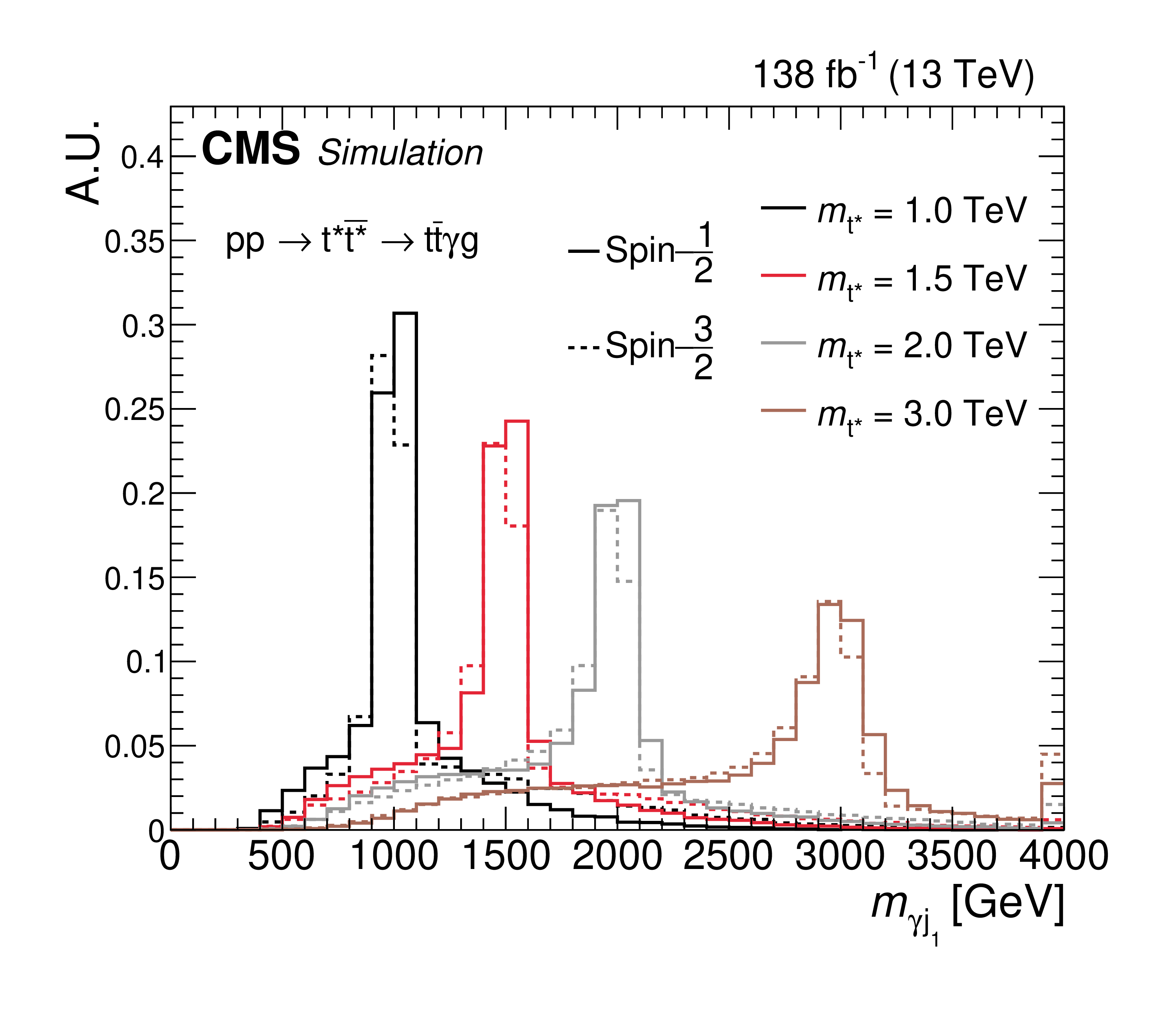 A search for the pair production of heavy spin-1/2 or spin-3/2 resonances (t*) in proton-proton collisions at √s= 13 TeV is presented. Data collected with the CMS detector at the CERN LHC from 2016 to 2018 corresponding to an integrated luminosity of 138 fb−1 are used. The analysis targets benchmark signal scenarios where one t* decays into a top quark (t) and a photon (γ), and the other into a t quark and a gluon (g), i.e., pp→ t* t* → t t γ g. All-hadronic final states from the t pair decay chain are selected using jet substructure techniques. The signal is probed as a function of the t* candidate mass, which is reconstructed using the photon and a top quark candidate jet. No significant deviation from the background-only hypothesis is found. Observed (expected) upper limits on the signal cross section at 95% confidence level are set, excluding masses of spin-1/2 t* particles below 930 (930) GeV and spin-3/2 t* particles below 1330 (1390) GeV. This analysis marks the first search for heavy resonances in the ttγg channel. Exploiting the high-energy photon to reduce the backgrounds, this search achieves sensitivity competitive with pp→ t* t* → t t g g searches for spin-1/2 t* despite the small expected t* → t γ branching fraction.