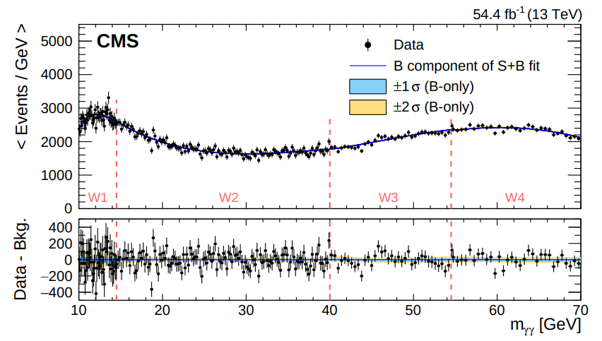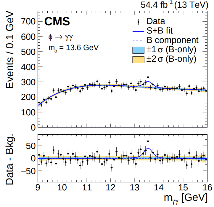 Most significant excess at 13.6 GeV, with local significance 3.5σ, and global 1.9σ