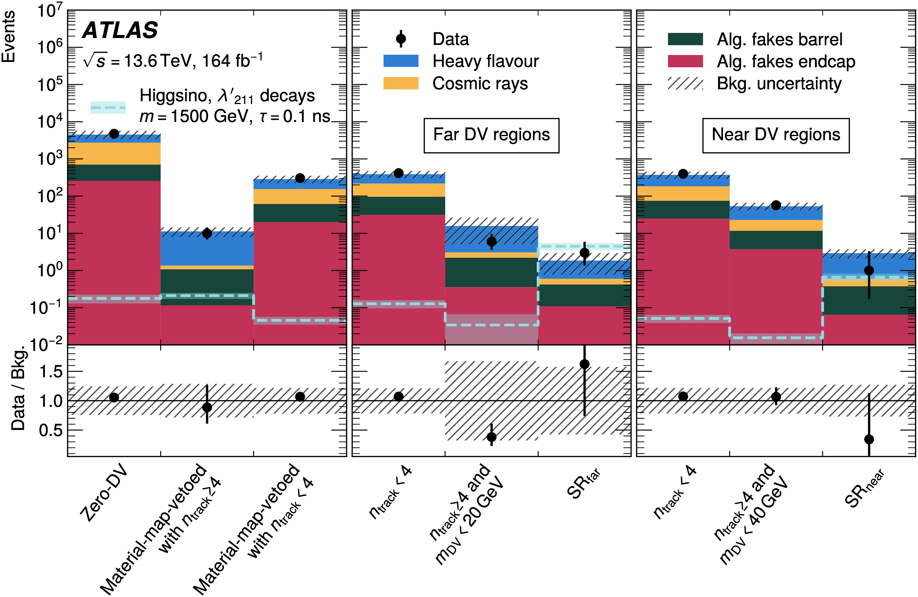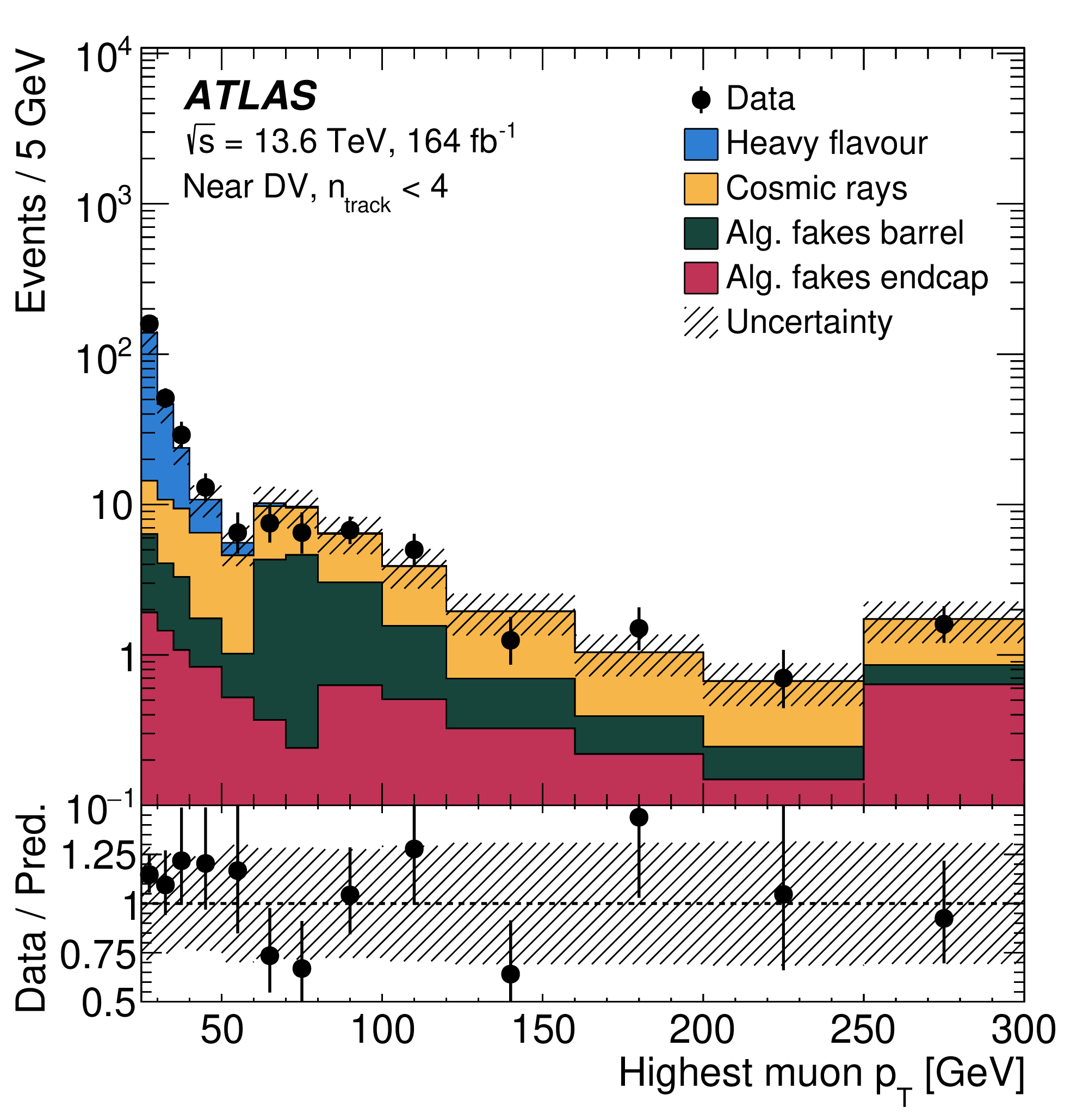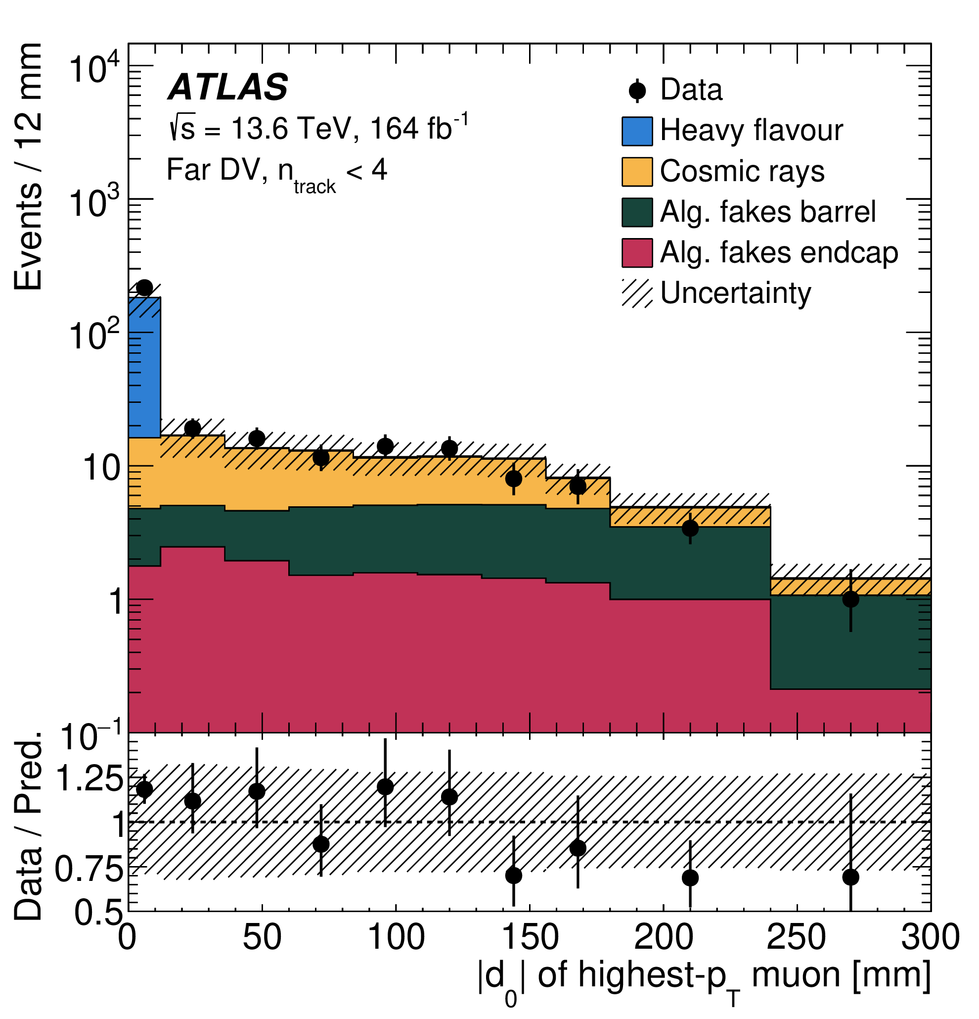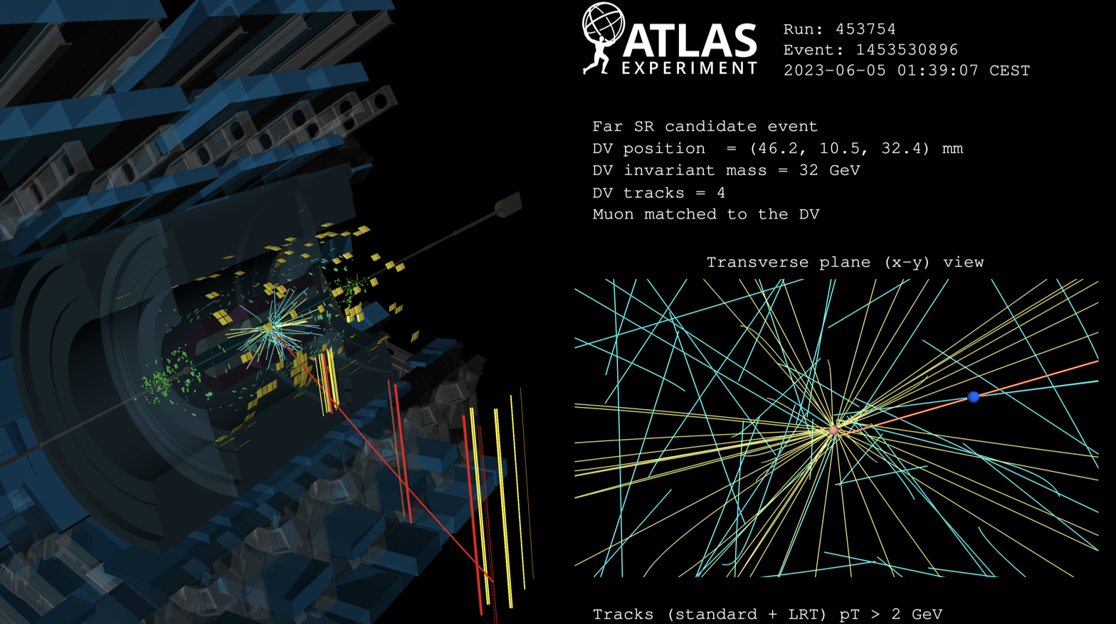 A search is presented for massive long-lived particles in events featuring at least one displaced vertex and at least one displaced muon, using proton-proton collision data collected by the ATLAS detector at the Large Hadron Collider from 2022 to 2024 at a centre-of-mass energy of 13.6 TeV. The data sample corresponds to an integrated luminosity of 164 fb-1. The analysis targets scenarios in which long-lived particles decay inside the ATLAS inner detector, resulting in a topology of at least one massive, displaced vertex (DV) with multiple associated tracks, and at least one muon with a large transverse impact parameter relative to the primary interaction point. The muon is not required to be associated with the DV. Two signal regions are defined by the transverse distance of the reconstructed DV from the interaction point. Background contributions are estimated by using fully data-driven techniques. No significant excess above the expected background is observed. Upper limits at 95% confidence level are set on the visible cross-section and on the production cross-sections of several benchmark models of -parity-violating supersymmetry.